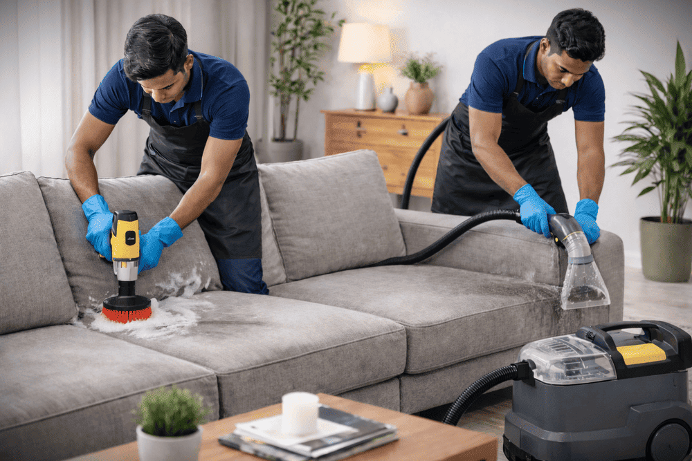 Professional cleaning to remove dust, stains, and allergens from sofas and carpets, restoring their original look and freshness.